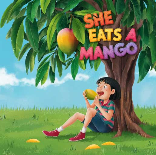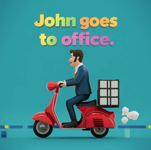 | John goes to office | She eats a mango |